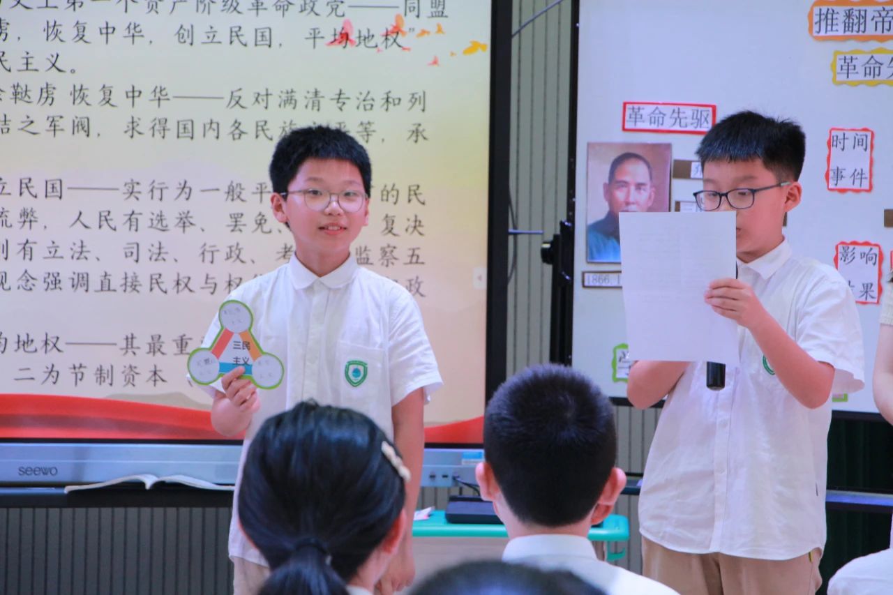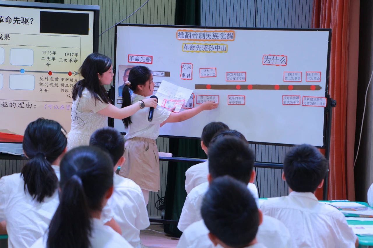 义乌外国语学校赖雪娜老师带领学生了解革命先驱孙中山,探索革命先驱孙中山和其他革命党人为了推翻清朝反动统治、探索救国救民道路所进行的努力,感悟仁人志士英勇无畏的革命精神,了解辛亥革命的重要意义。