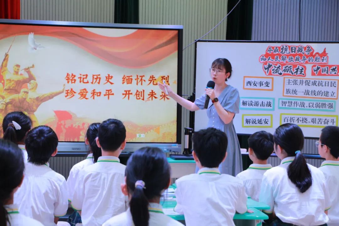 义乌外国语学校冯晨晨老师在学生质疑问难中梳理出“解码抗日战争之中流砥柱”微项目学习主题,精选史料开展学习,体悟中国共产党在抗日战争中发挥着中流砥柱的作用,激励学生树立奋发图强的爱国志向。