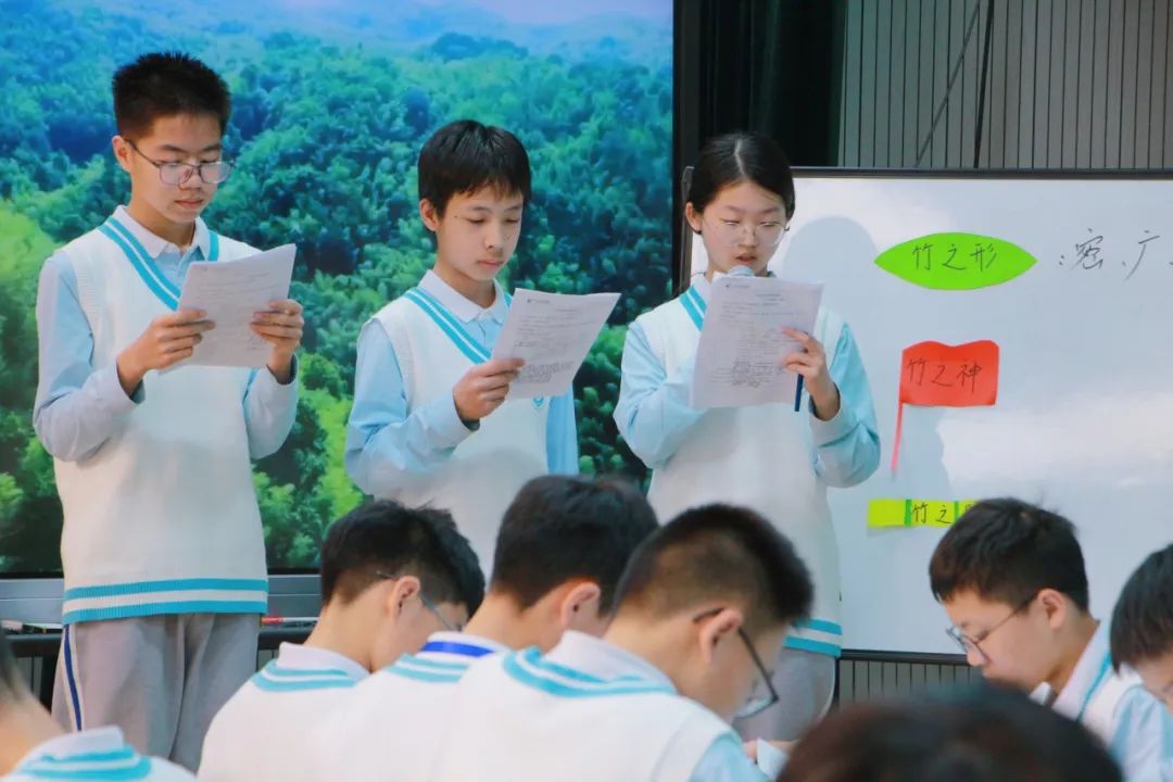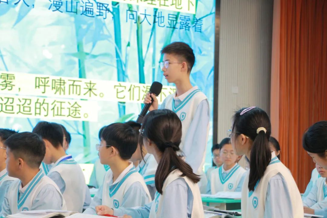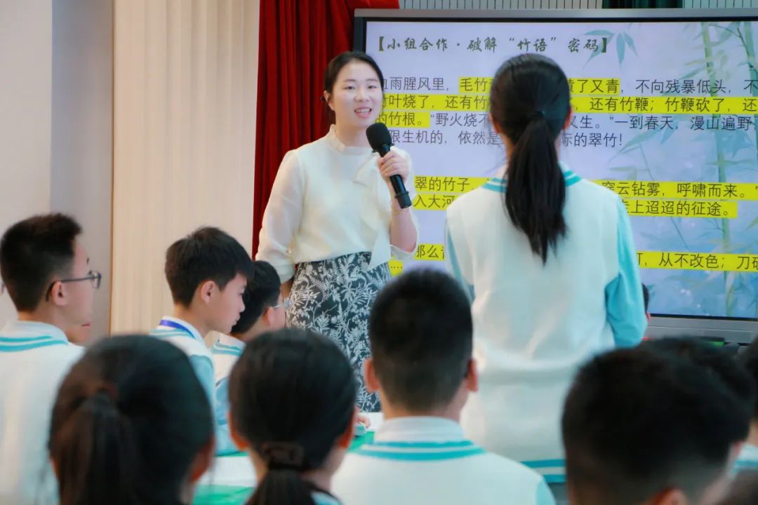 浙江义乌外国语学校张敏老师聚焦《井冈翠竹》的“翠”字,带领学生破解“竹语”密码,挖掘语言形式与象征意蕴的关联,感悟井冈山精神。课堂链接黄文秀等时代楷模事迹,探讨“翠色永恒”密码;借《井冈翠竹礼赞》诗歌补写,引导学生将“破土向上”的竹魂化为青春践行的信念,实现红色基因的创造性传承。