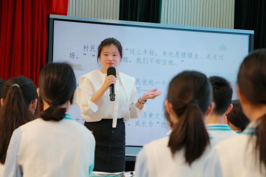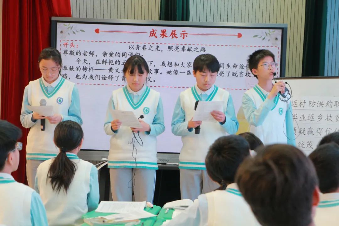 浙江义乌外国语学校闫微老师执教的《青春之光》设计“你的名字 你的故事”“你的言行 你的光亮”“我们的名字 你们的影子”“借你的愿望 谱我的心声”四个环节,引领学生们解码文秀书记从平凡到不平凡的蜕变,借扶贫日记提炼长征精神在脱贫攻坚中的回响,从红军血战到文秀逆行,感悟理想传承。课堂更以学生姓名为纽带,引导学生解读名字中的期许,从文秀的"青春之光"中汲取力量,终以原创歌词播种信仰之光。
