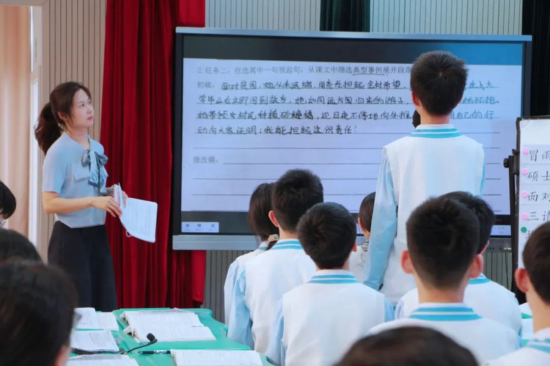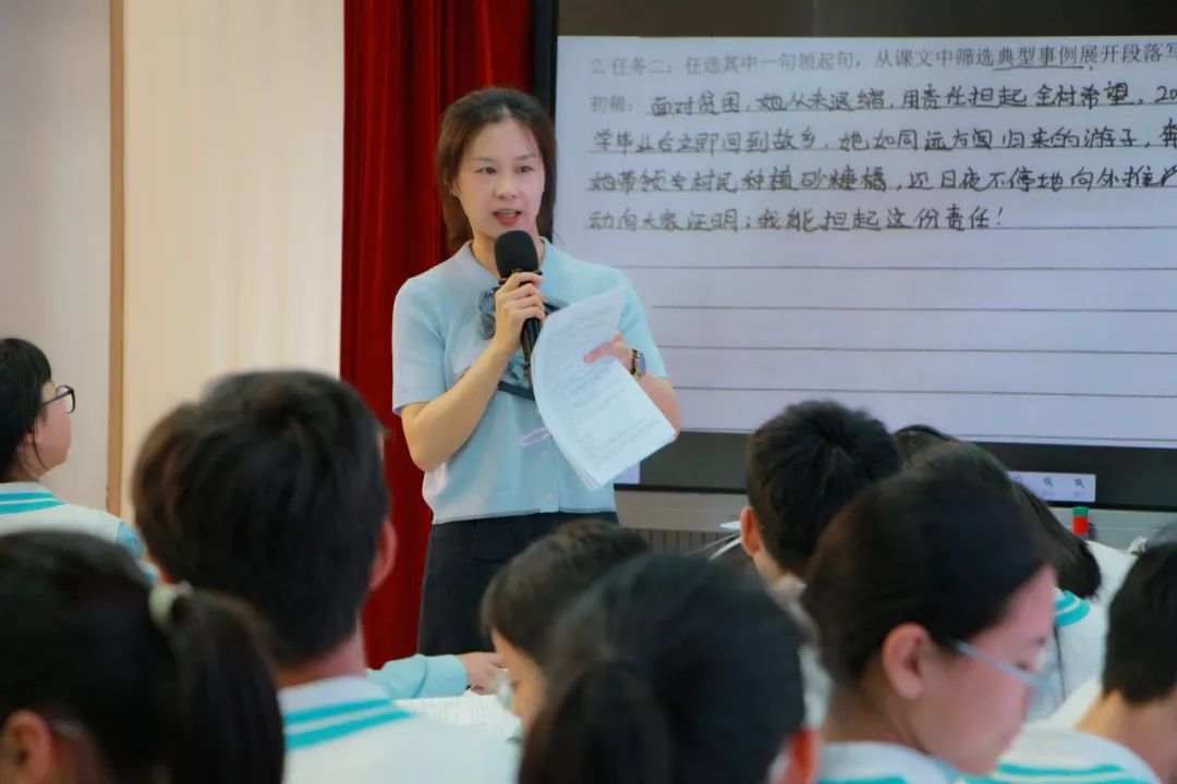 苏溪镇中陈莉莉老师创新整合教学资源,以闫微老师课堂素材为基石,呈现了一堂别开生面的作文课《如何选材》。她以“国旗下讲话稿”为任务情境,借邓稼先事迹范例,指导学生完成对文秀书记的礼赞创作,实现了从文本解码到创意生长的思维跃迁。