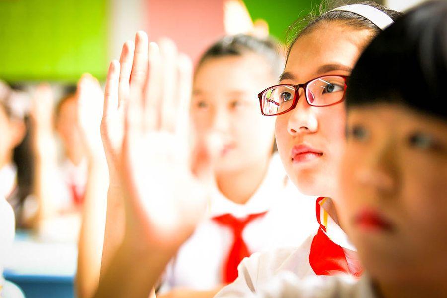 我们一起在欢笑声中共享校园里如诗的朝阳……