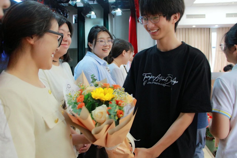 杨卫平校长逐一为每位学生颁发毕业证、为优秀学子颁发证书,高三年级主任徐文杰老师向学校敬赠锦旗,学生代表手捧献花向辛勤耕耘的全体高三教师致谢,师友情长,在岁月长河里凝成最动人的模样。